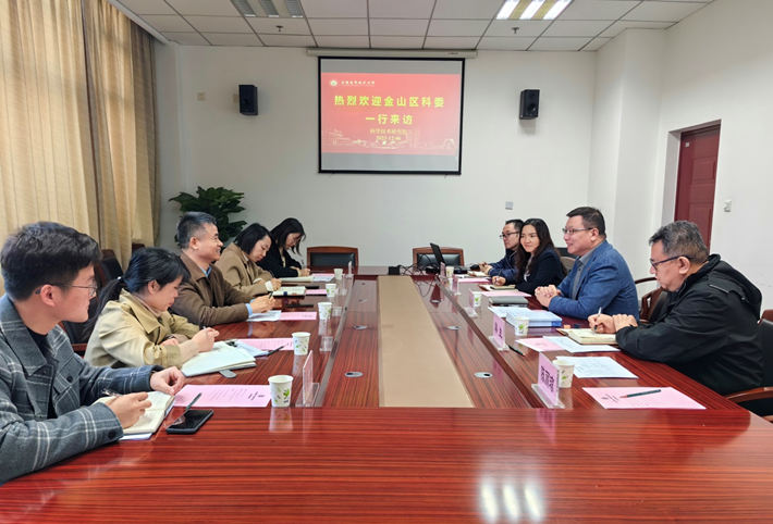 12月6日,金山区科委主任邱辉忠一行来访我校,校长汪小帆出席座谈会,会议由科学技术研究院院长韩生主持。