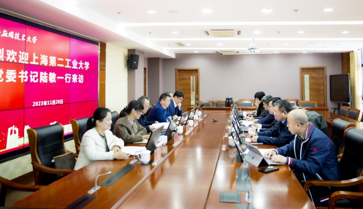 11月28日,上海第二工业大学党委书记陆敏一行来校调研交流。校党委书记郭庆松热情接待,双方进行了座谈交流。