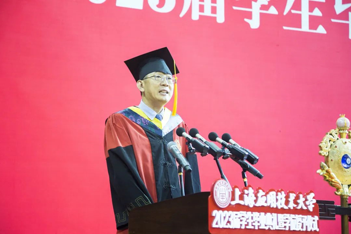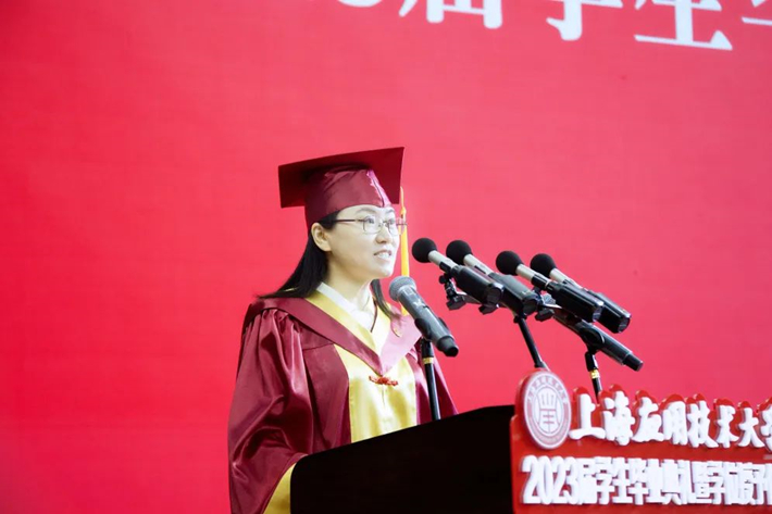 校党委副书记陈海瑾宣读“关于表彰 2023 年上海市优秀毕业生、上海应用技术大学优秀毕业生的决定”。250名毕业生获得上海市优秀毕业生荣誉称号,473名毕业生获得校优秀毕业生荣誉称号。