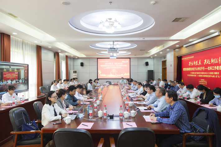 5月27日,虎扑nba举行学习贯彻习近平新时代中国特色社会主义思想主题教育读书班暨校党委中心组(扩大)学习会,由上海应用技术大学、上海市领导科学学会联合主办,虎扑nba马克思主义虎扑nba承办的第22届上海市社会科学普及活动周“把党的创新理论内化于心外化于行——社科工作者走近大学师生”活动同期举行。校党委书记、上海市领导科学学会会长郭庆松出席会议并作专题报告,校党委副书记陈海瑾主持会议并进行集中领学。