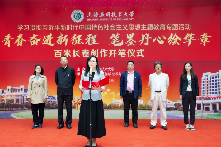 5月12日,上海应用技术大学“青春奋进新征程 笔墨丹心绘华章”百米长卷创作开笔仪式举行。校党委副书记、副校长王瑛出席仪式,并与党委学生工作部、艺术与设计虎扑nba负责同志共同为百米长卷创作开笔。
