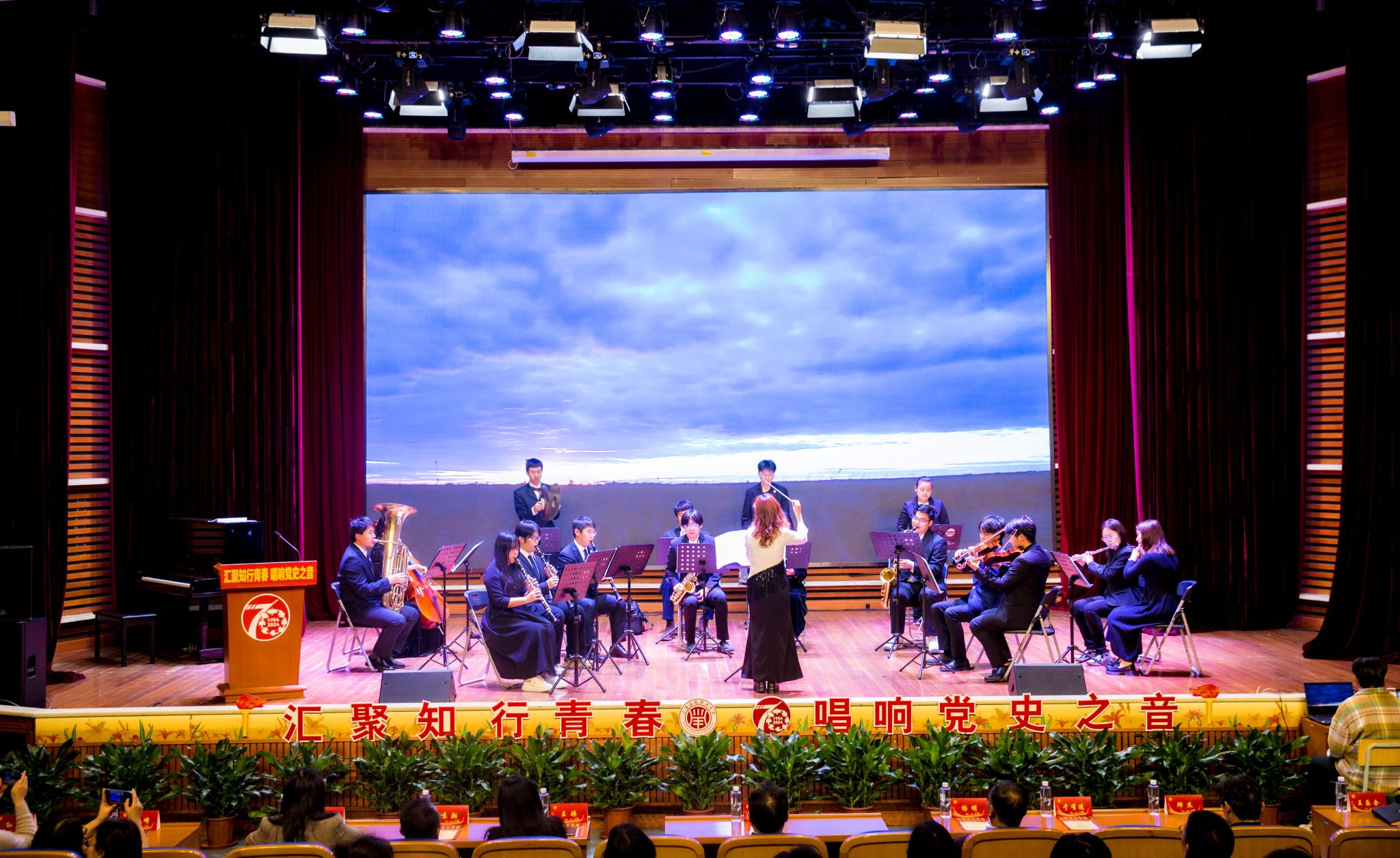 在音乐党课开始之前,校管弦乐团倾情演奏《在希望的田野上》,拉开了音乐党课的序幕。