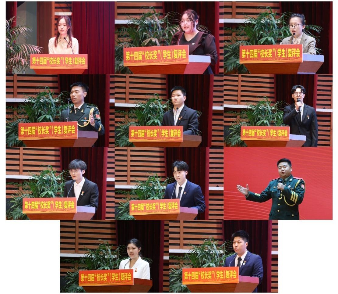 复评会上,11名候选人分别从砥砺前行的奋斗历程、经邦济世的家国情怀、专业学习与国际视野、团队合作与科创实践、社会实践与志愿服务等方面对自身进行了全面的概述,先后进行了演讲。11位师友代表从候选人学业成绩、专业特长、责任与担当、朋辈模范等角度进行了精彩点评。