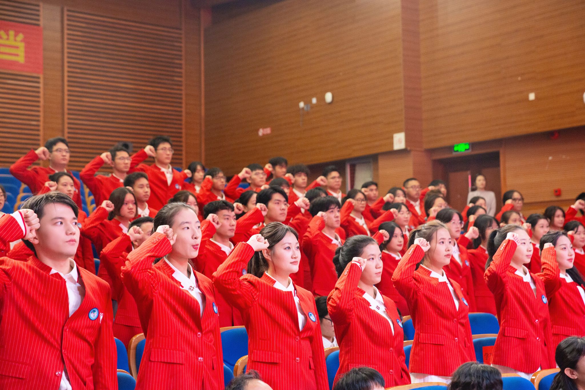 为进博,一起来!向前进,博青春!在3名领誓“小叶子”的带领下,全体进博会志愿者庄严宣誓,齐声喊出铮铮誓言。
