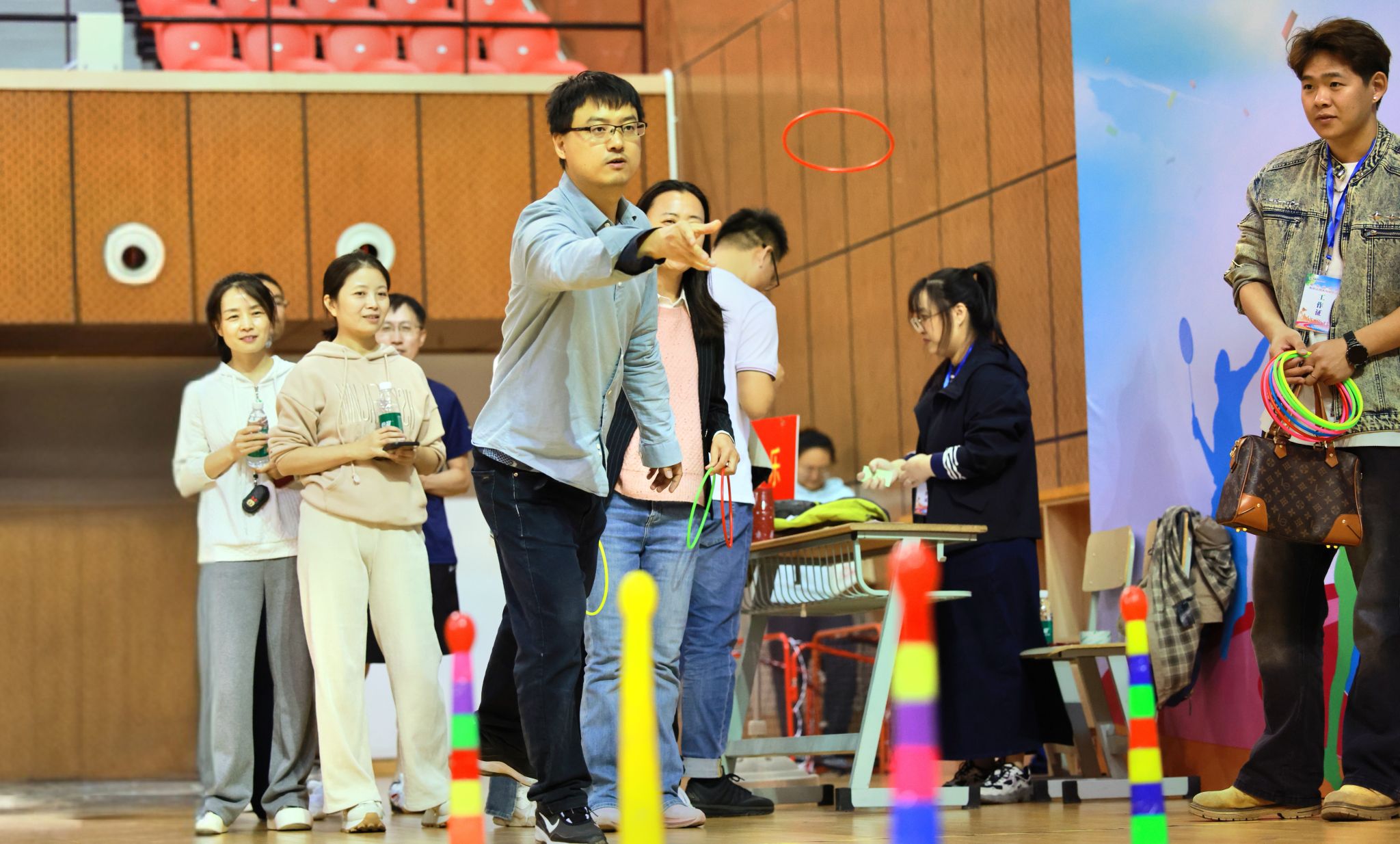 教工们在集体项目中尽显团队默契与欢乐,这是智慧和体力的角逐,更是团结和协作的完美比拼。各类妙趣横生的单人项目受到教工们的喜爱,标准的姿势,专注的眼神,彰显着上应人的投入和执着,比赛现场洋溢着欢乐的笑声。除了体力上的较量,校工会还给热爱纸牌游戏的老师们提供了展示智慧和交流互动的平台,16支参赛队在紧张刺激的竞技中释放压力,享受游戏带来的轻松与愉悦。