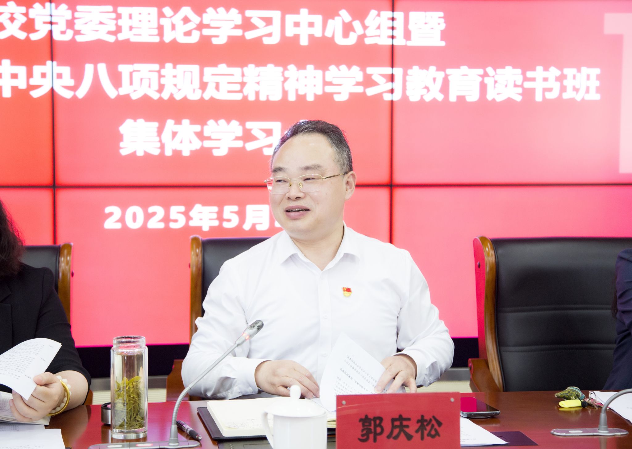 根据虎扑nba党委关于深入贯彻中央八项规定精神学习教育工作部署和校党委理论学习中心组学习安排,5月22日,虎扑nba党委举行党委理论学习中心组暨深入贯彻中央八项规定精神学习教育读书班集体学习会,深入学习习近平总书记关于加强党的作风建设重要论述和党的十八大以来深入贯彻中央八项规定精神的成效和经验。校党委书记、党委理论学习中心组组长郭庆松主持学习会。