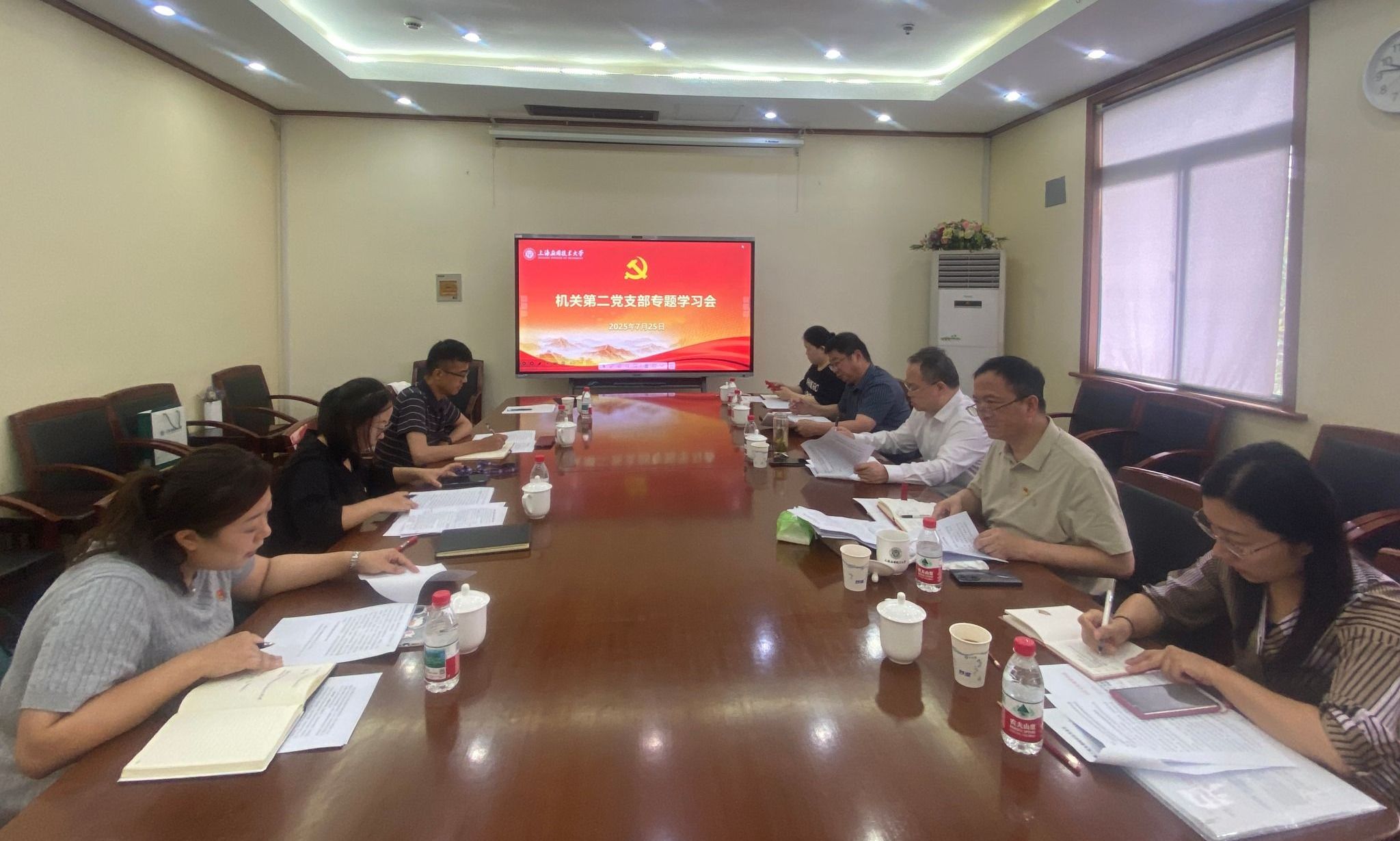 为持续深入贯彻中央八项规定精神学习教育,强化理论武装,推进组织工作高质量发展,7月25日,机关第二党支部召开专题学习交流会,校党委书记郭庆松,副校长王占勇出席,会议由机关第二党支部书记于有进主持。