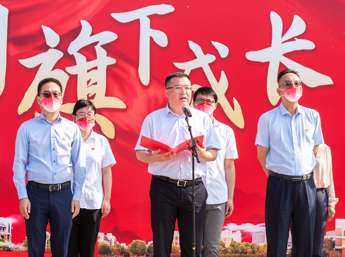 李健带领师生回顾了73年来新中国取得的历史性成就和发生的历史性变革,深情勉励广大上应青年要始终牢记习近平总书记的谆谆教导和殷殷期望,努力成长为有理想、敢担当、能吃苦、肯奋斗的新时代好青年,用奋斗践行“请党放心、强国有我”的青春誓言,奋力跑出新时代青年最好的成绩,以优异的成绩和饱满的热情迎接党的二十大胜利召开。