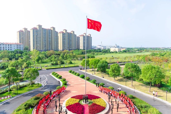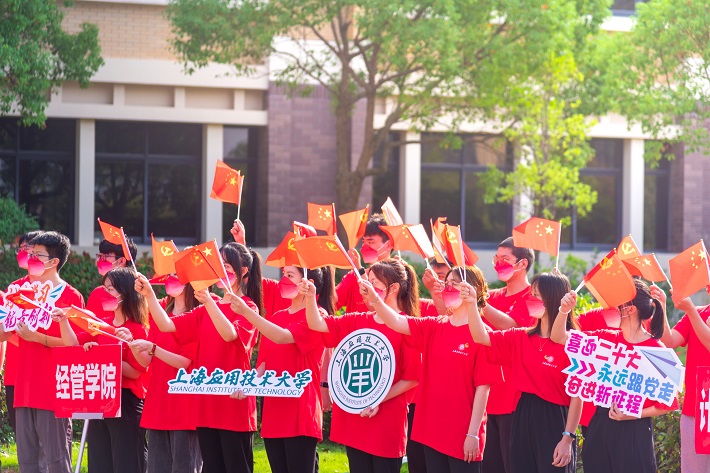 明媚阳光下,全场师生挥舞鲜艳的五星红旗,齐声高唱《歌唱祖国》,歌声飘荡在清晨的上应校园,豪迈有力,高远辽阔,充分表达了上应师生热爱祖国的拳拳之心,充分展示了上应师生奋进新征程、建功新时代和满怀豪情喜迎党的二十大胜利召开的喜悦心怀。