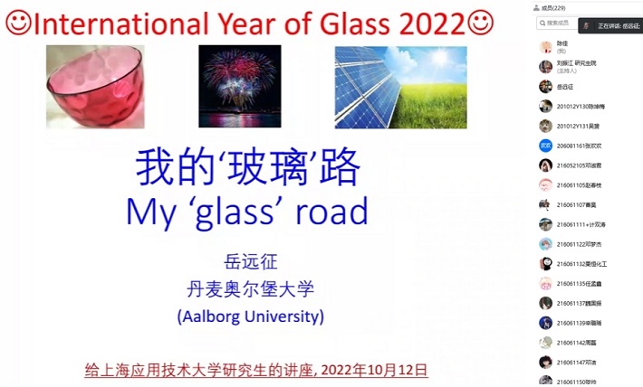 据介绍,岳远征教授自1994年柏林工业大学获博士学位后,一直在欧洲玻璃工业界和学术界工作。2003年创立丹麦奥尔堡大学非晶材料研究中心。以第一作者或通讯作者在Nature、Science等国际杂志上发表了320多篇学术论文。在120多次国际会议上做特邀报告。任European Journal of Glass Science and Technology副主编、Journal of Non-Crystalline Solids编委。任国际玻璃协会(ICG)理事和ICG玻璃纤维技术委员会主席。