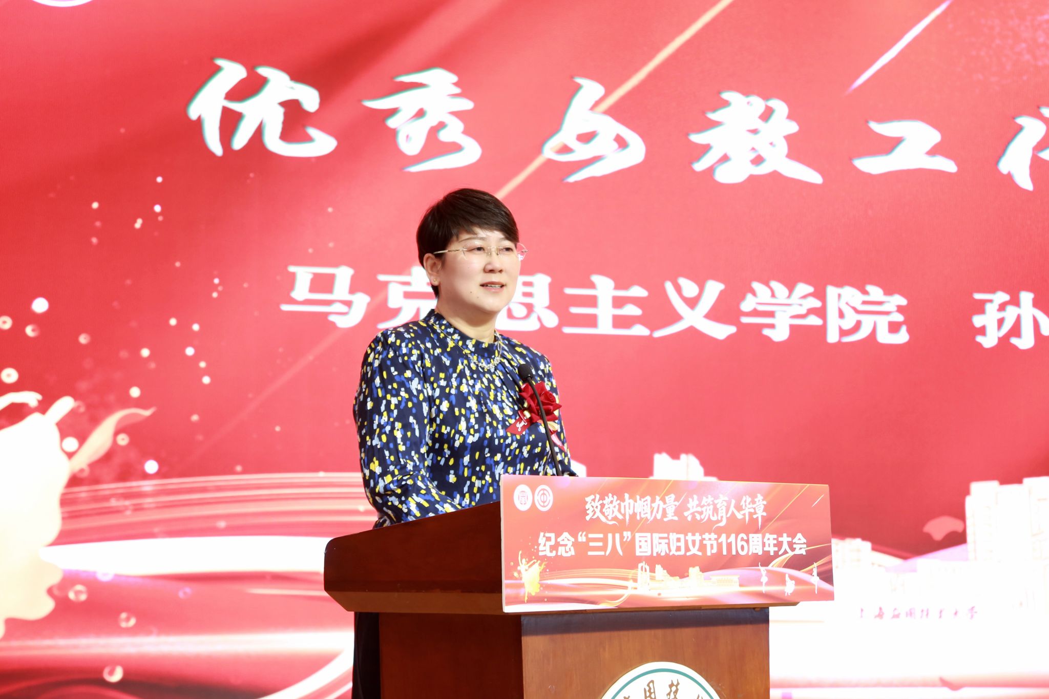 春满杏坛绽芳华,巾帼奋进谱新篇。3月6日下午,上海应用技术大学“致敬巾帼力量 共筑育人华章”——纪念“三八”国际妇女节116周年大会在奉贤校区举行。校党委书记郭庆松出席大会并致辞,百余名优秀女教师及女干部代表齐聚一堂,共庆佳节。