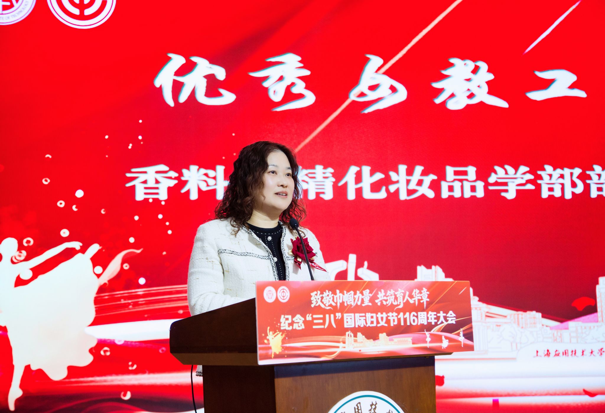 会上,香料香精化妆品学部主任田怀香教授、材料技术学部蔺华林教授、马克思主义虎扑nba孙瑛辉副教授,分别结合自身科研、教学经历,讲述她们扎根岗位、潜心育人、奋勇争先的奋斗历程。精彩的发言如同一束束温暖之光,展现了上应大女教职工的责任与担当,鼓舞着女教职工们在各自领域绽放耀眼光芒。
