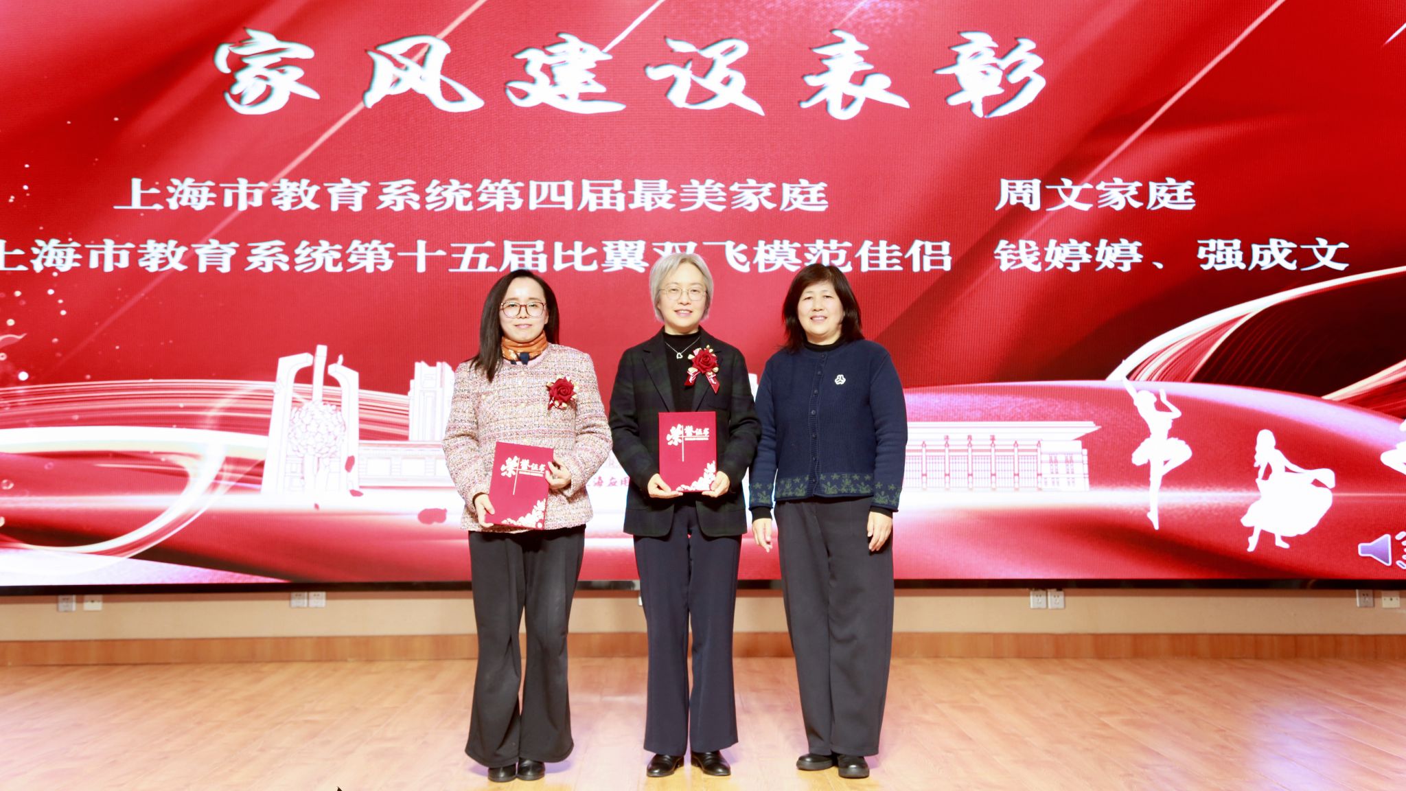 家风建设表彰环节,人文虎扑nba周文家庭荣获上海市教育系统第四届“最美家庭”,化工与能源技术学部钱婷婷家庭获评上海市教育系统第十五届“比翼双飞模范佳侣”。他们用相濡以沫的坚守、勤勉治家的风尚,诠释了优良家风的内涵,为全校教职工树立了榜样。