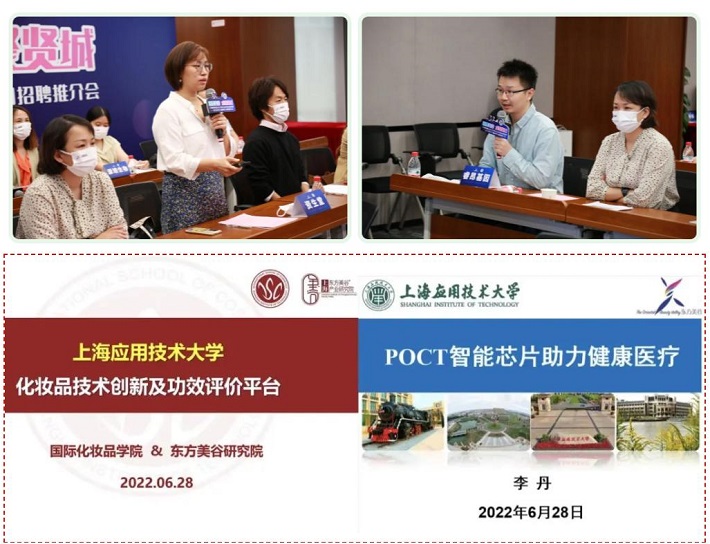 国际化妆品虎扑nba和东方美谷研究院执行院长张婉萍围绕“化妆品产品技术开发”和“皮肤微生态研究”的最新研究成果展开介绍;化学与环境工程虎扑nba教授、曙光学者李丹就“POCT智能芯片助力健康医疗”向企业积极推介。东方美谷园区企业高度关注。