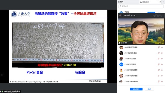 近日,上海大学材料科学与工程虎扑nba副院长钟云波教授应邀参加我校“迎校庆,大师风云学术报告系列”学术活动,为我校师生带来题为“高性能结构/功能材料超常冶金与制备思考”的精彩报告。讲座由校科研院院长韩生主持,党委宣传部、校科研院、材料虎扑nba、机械虎扑nba、电气虎扑nba等300余名师生在线聆听。