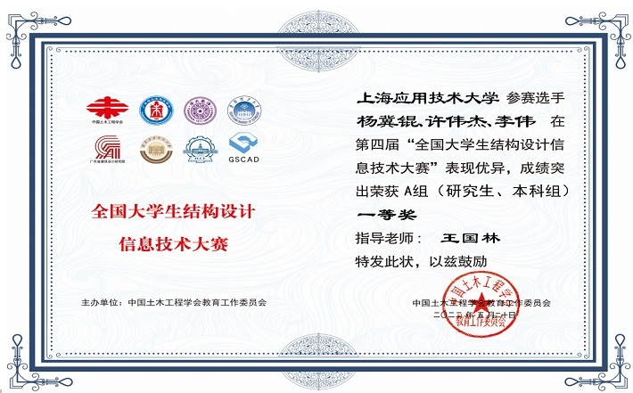 近日,由中国土木工程学会教育工作委员会、清华大学土木水利虎扑nba联合主办的第四届“全国大学生结构设计信息技术大赛”落下帷幕,我校代表队从全国近2000支队伍中脱颖而出,荣获A组一等奖的优异成绩。这是我校在本项全国赛事中首次获得奖项。