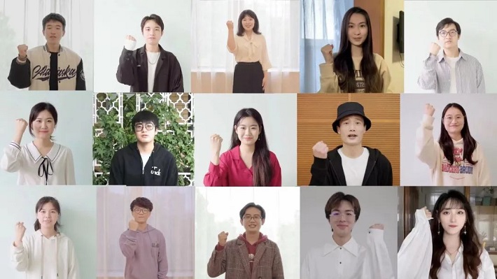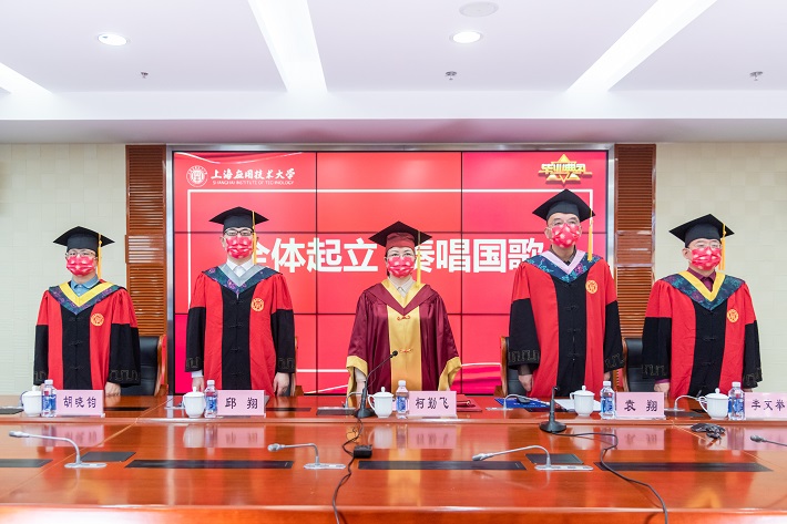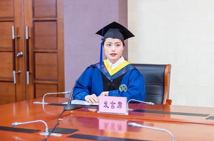 毕业典礼采用线下+线上直播方式进行,近2万人通过视频直播平台观看“云毕业典礼”,点赞近10万。在雄壮嘹亮的国歌声中,毕业典礼拉开序幕。