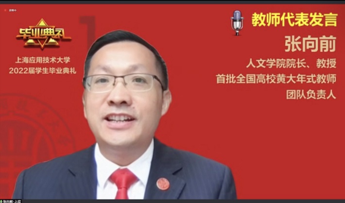 首批全国高校黄大年式教师团队负责人、我校人文虎扑nba院长、博士生导师张向前教授代表全校教师发言,表达对全体毕业生的殷切期望和真诚祝福,希望同学们胸怀“国之大者”,从基层做起,从小事做起,积极主动承担更大社会责任,为国家富强民族复兴贡献智慧和力量,成为无愧于时代的科学家、企业家或政治家,期待着同学们的捷报频传!