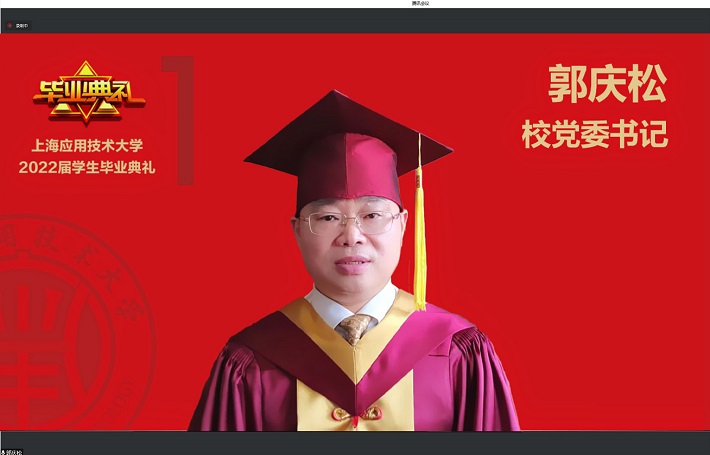 郭庆松宣读“关于表彰2022年上海优秀毕业生、上海应用技术大学优秀毕业生的决定”。249名毕业生获得2022年上海市优秀毕业生荣誉称号、489名毕业生获得2022年上海应用技术大学优秀毕业生荣誉称号。