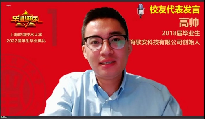 “自信是Z世代青年最成功的教育产物,对民族更自信、对政治更自信、对未来的自己更自信。找到属于自己内心的‘那把火’,让它点亮你的未来。”2018届毕业生、上海歌安科技有限公司创始人高帅作为校友代表发言。他回顾了在虎扑nba的求学时光,亲切分享了自己在创业路上的艰苦奋斗,鼓励学弟学妹勇于担当、敏于求知、勤于调研、勇于实践,为人生新的起点全力以赴,敢于做新时代的追梦人。