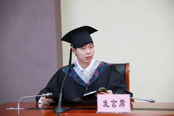 毕业研究生代表、上海市优秀毕业生、已被江南大学录取为博士生的香料香精化妆品学部王三霞同学发言,她用柔情满怀的文字表达了对母校的热爱和不舍:在求学生涯里,一路有过“一山放过一山拦”的困难挫折,也有过“艰难困苦有时尽,直挂云帆济沧海”的豪迈情怀,但是我们“眼中有光,脚下有力,风雨何惧”,所以一定不负母校期望,用最优异的成绩、最无限的激情去回报社会、报效祖国、把青春播撒在民族复兴的征程上。