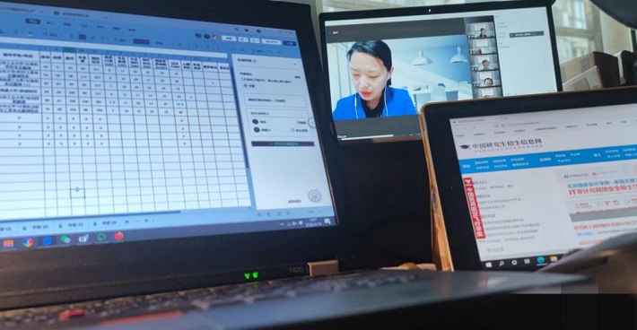 为避免遗漏考生信息,答辩秘书逐一与考生电话联系,确保所有参加复试同学第一时间收到相关信息,并对有设备调试需求的个别考生,进行云上音视频设备调试指导。
