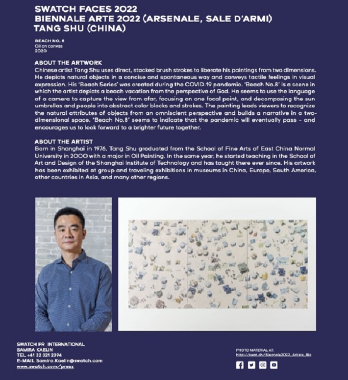 日前,第59届威尼斯国际艺术双年展开幕,来自58个国家的213位艺术家参展。我校艺术虎扑nba教师汤曙的作品《海滩 No.8》入选本届威尼斯双年展Swatch faces 2022主题展。