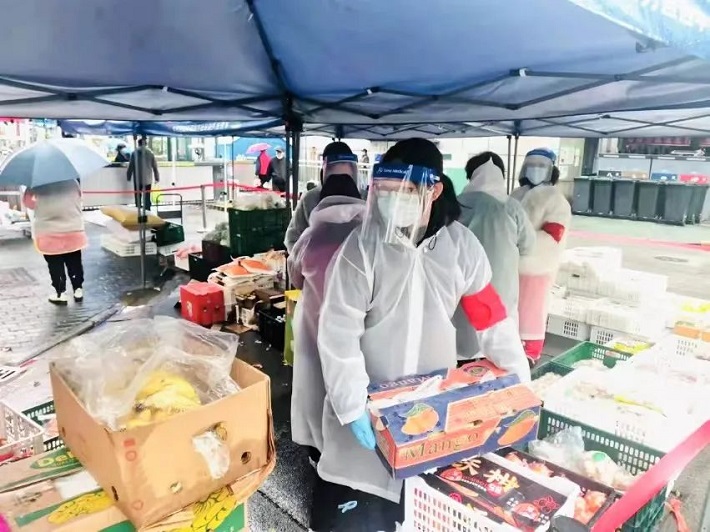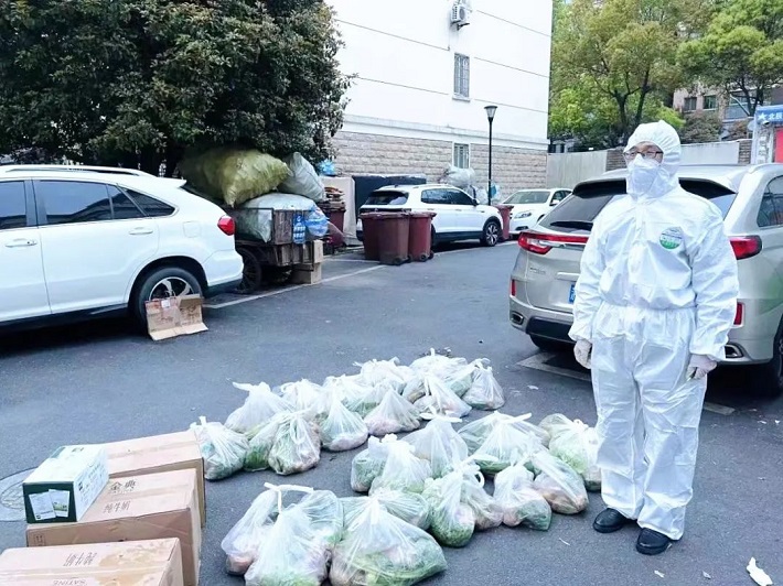 闵行区梅陇镇是此次疫情防控重点区域,继续教育虎扑nba杨颖丽老师主动请缨,加入所在社区疫情防控志愿队伍,她协助社区做好封控区内居民的生活保障工作,为封控隔离楼的居民分菜,按照整理出来的名单逐户上门派送。