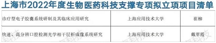 近日,上海市科学技术委员会公布了2022年度“科技创新行动计划”生物医药科技支撑专项立项项目名单,我校理虎扑nba戴翠霞教授领衔的科研团队申报的《快速、高分辨口腔检测光学相干层析成像系统研究》和计算机科学与信息工程虎扑nba教师崔柳申报的《诊疗型电子胶囊系统研制及其临床应用研究》2个项目获批立项。