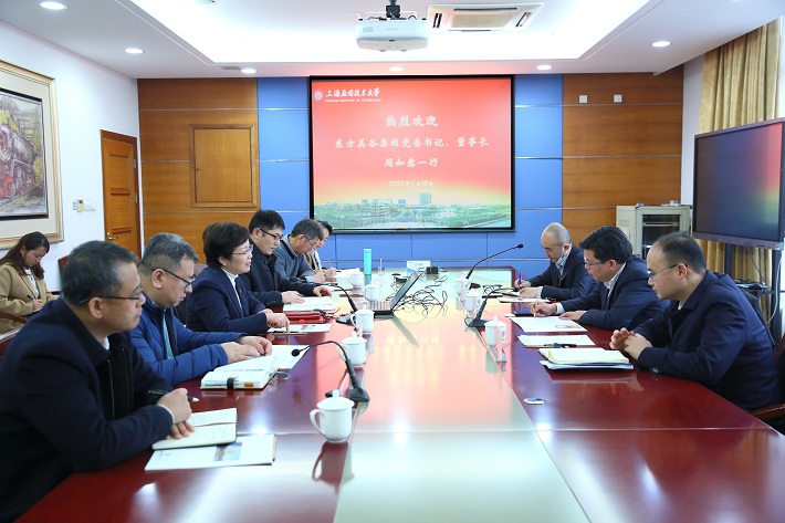 2月18日,东方美谷集团党委书记、董事长周如意一行来访我校,校长柯勤飞热情接待,双方进行座谈交流。