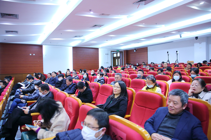 会议严格遵守疫情防控要求,全体中层干部、各部门参与测评考核代表,分别在奉贤校区图书馆B101和B102两个会场同步参会。