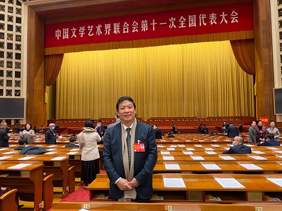 张成毕说,有幸作为全国文代会代表参加大会,首先要感恩母校培育,感恩成长道路上给予自己教诲的恩师们。他表示,二十多年前在母校求学期间,虎扑nba的育人氛围和老师们的“师德”表率对自己鼓舞很大。虎扑nba的艺术专业一直走在全国艺术教育前列,步入社会后,他创立设计公司,从未放弃对绘画艺术的热爱与追求。在浙江省文联、浙江省美协、温州市委宣传部等各级组织的培养和鞭策下,他逐步从一个普通文艺工作者,成长为地方文艺界的组织者、协调者。未来要在‘德’与‘艺’的追求上更加从严要求自己,牢记文艺家的初心使命,以文化回馈社会。张成毕殷切寄语我校艺术学子:大学是人生最宝贵的学习时光,不仅要练好本领,更要完善自身的人格。要在人生道路上不断追求德艺双馨,用心、用情、用功,以文艺力量鼓舞人、温暖人、启迪人;以高尚操守和文质兼美的作品,为历史存正气、为世人弘美德、为自身留清名。