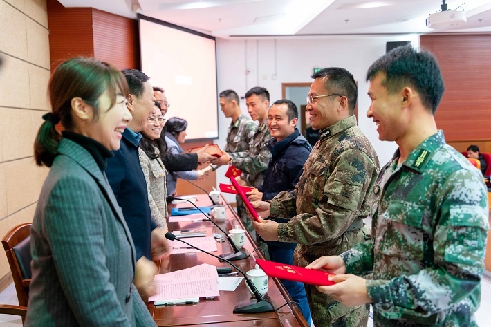 仪式上,与会领导嘉宾为我校退役军人服务站相关负责人颁发聘书。宋明枫汇报了我校退役大学生士兵情况及服务站建设情况。2018年退役大学生士兵代表、2021年“校长奖”入围奖获得者赵春枝和2020年退役大学生士兵代表、退役大学生士兵协会负责人吴文龙发言,表示作为一名退役大学生士兵,充满了自豪感、幸福感、归属感和荣誉感。