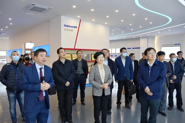 签约仪式后,柯勤飞一行参观了海华科技智控中心、企业展厅和研发中心。
