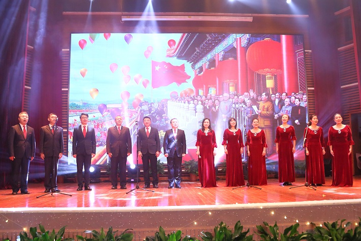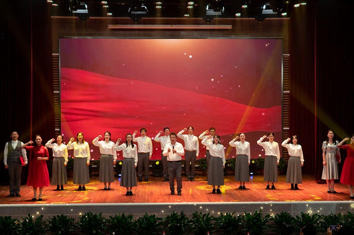 郭庆松、王瑛作为上海市高校校长合唱团成员,倾情加入我校教工合唱团,给观众带来经典红色歌曲《不忘初心》,将现场气氛推向高潮。