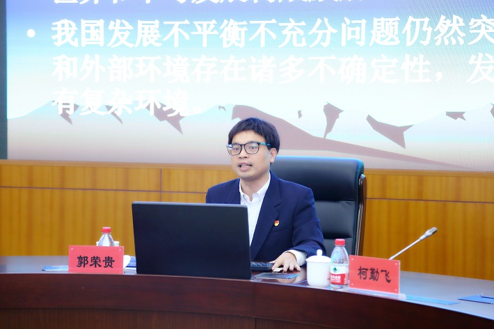 郭荣贵以《坚持底线思维,打好防范化解意识形态领域风险主动仗——深入学习领会习近平总书记关于意识形态工作的重要论述》为题,结合解读总书记关于意识形态工作的重要论述,就当下意识形态工作总体态势及需防范的各类风险进行了重点剖析,并就如何做好新形势下的意识形态工作提出了要求。