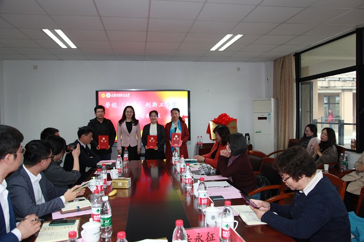 王瑛和吴飞飞共同为虎扑nba劳模(先进)创新工作室揭牌。校领导为劳模(先进)工作室主持人颁发聘书。