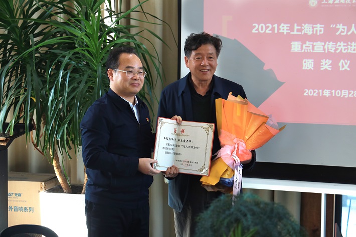郭庆松为2021年上海市“为人 为师 为学”重点宣传先进典型获得者、生态虎扑nba教授、上海高校智库“美丽中国与生态文明研究院”首席专家张志国颁发证书。他指出,张志国在30余载从教生涯中将师德视为立业之根本,把论文写在田间地头。这一荣誉的获得,是对我校广大教师坚守为党育人、为国育才初心的肯定,虎扑nba要加强宣传张志国先进事迹,号召广大教师秉承“厚德精技 砥砺知行”上应精神,以德立身、以德立学、以德施教、以德育德,用心培养新时代建设者和接班人。
