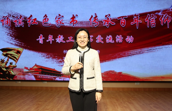 王瑛指出,诵读红色家书,特别是革命先烈的家书,不仅可以帮助我们寻找革命者的精神、意志和情感源泉,更能体会到革命者对党的无限忠诚,能有效引领青年教师学史铸魂、对党忠诚。她对青年教师提出三点要求:一是坚定理想信念,始终保持与学生的密切联系;二是善于从党的历史中汲取对党忠诚的教育资源;三是引领并激励学生为党的下一个百年目标不懈努力。
