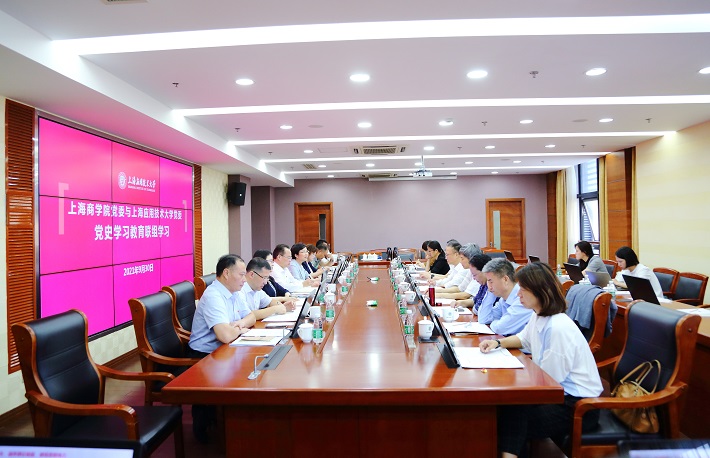 为进一步推进党史学习教育走深走活,创新学习形式,增强学习实效,以高质量学习推动高质量发展,9月30日下午,上海应用技术大学与上海商虎扑nba聚焦“统筹推进党史学习教育与虎扑nba高质量发展”与“深入学习贯彻习近平总书记在庆祝中国共产党成立100周年大会上的重要讲话精神”两大主题,开展专题联组学习会。