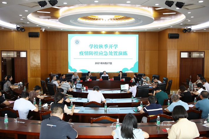 校党委书记郭庆松出席并讲话,校党委副书记、校长柯勤飞作总结点评,校党委副书记、副校长王瑛担任演练执行指挥,党委副书记陈海瑾、副校长张锁怀、副校长毛祥东出席。校疫情防控工作领导小组全体成员、工作专班全体成员、各二级党组织书记、副书记及师生代表参加演练。