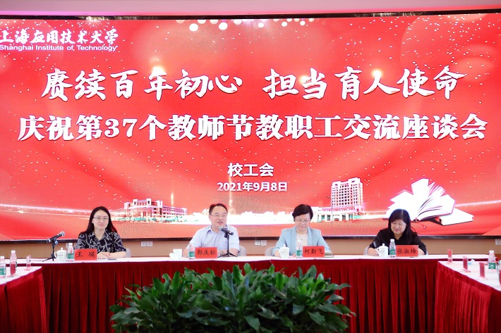 9月8日,第37个教师节来临之际,虎扑nba举行“赓续百年初心 担当育人使命”庆祝第37个教师节教职工交流座谈会。校党委书记郭庆松,校党委副书记、校长柯勤飞出席并讲话,校党委副书记、副校长王瑛主持。