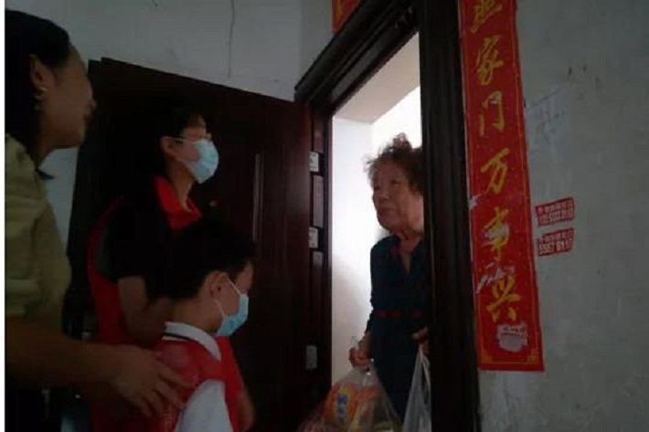 7月23日,在积水逐渐退去的过程中,各个社区也在重新恢复。周珂如主动向社区和应急救援中心报名参加志愿服务。她先后到绿财社区,锦华苑社区,广测社区等为社区居民分发矿泉水,面包等食物,反复攀爬多层楼梯只为食物的送达。此外,她还帮助慰问独居在家、行动不便的老人。在看到八十多岁的老人脸上露出的安心的笑容时,周珂如也感到心中有温情流淌。