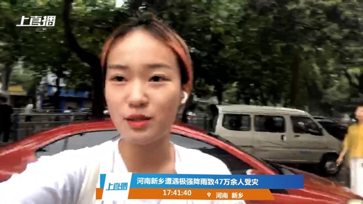 7月21日晚六点开始,家乡河南省新乡市发生特大暴雨,进而诱发洪涝灾害。作为新乡市的一份子,责任感和使命感驱使李兆瑞想为家乡做些事情,尽个人所能帮助大家。7月22日下午五点左右,她接到澎湃新闻邀请,播报新乡市的受灾情况。