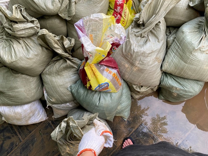 7月21日、22日两天,河南新乡、卫辉持续下暴雨,卫河水位暴涨,当地于22日、23日进行泄洪工作。为了防止泄洪可能导致雨水进入居民住宅,夏祎璘和家长一起参加了沙袋填充以及分发工作。志愿者采用流水作业,每人装十袋更换一次位置,最后将沙袋进行装车,根据每户需求,进行挨家挨户进行沙袋配送。