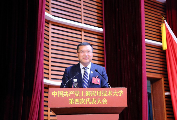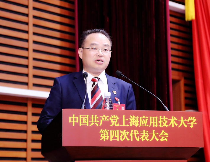郭庆松同志代表中国共产党上海应用技术大学第三届委员会向大会作题为《勇担时代使命、抢抓发展机遇、加快建设具有国际影响力的高水平应用创新型大学》的报告。