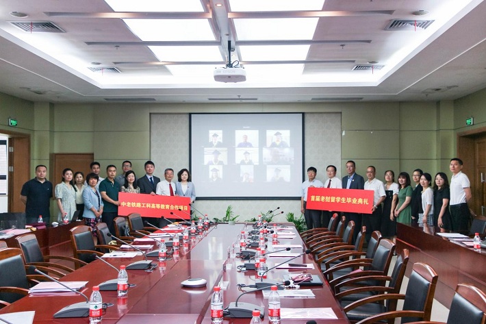 7月5日,中老铁路工科高等教育合作项目首届老挝留学生毕业典礼举行。原校党委书记祁学银,校党委副书记陈海瑾出席。老挝留学生毕业生目前都在中老铁路现场实习,他们通过视频连线的方式参加了毕业典礼。