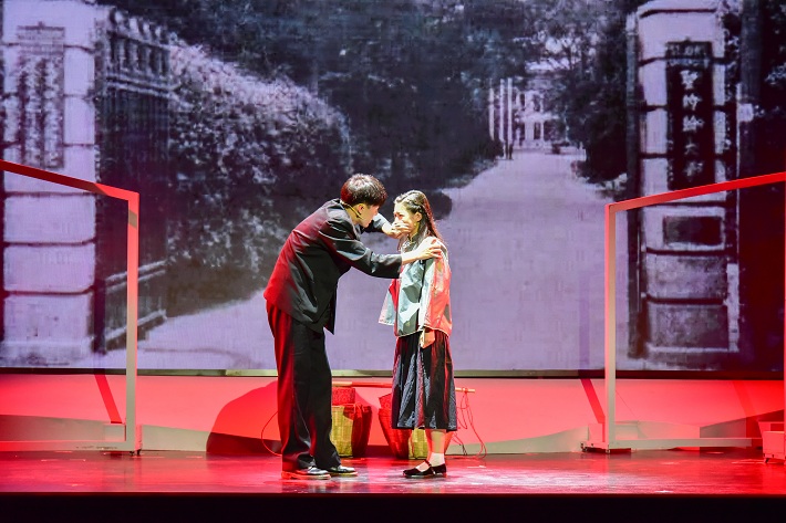 话剧从祝尔纯的自述和她与青年教师江楠的对话开启,引述了祝尔纯的崇高精神和学生时代的成长历程。