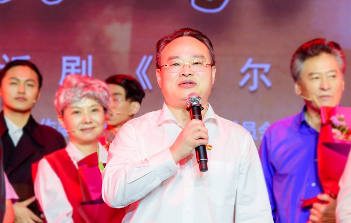郭庆松、柯勤飞、王瑛、李健、张锁怀等领导走上舞台,与演职人员亲切握手,代表虎扑nba祝贺演出成功,对所有参与话剧筹备和演出的各方面力量表示衷心感谢。
