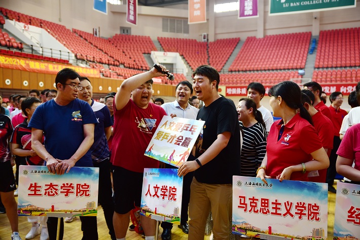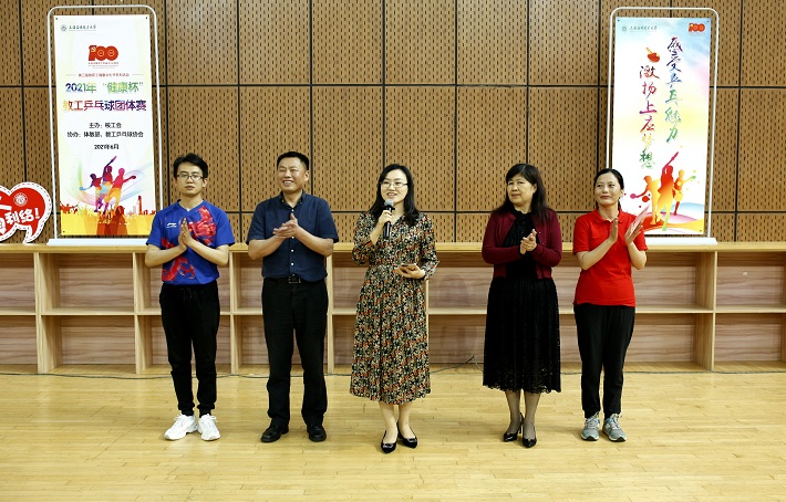 6月4日,我校2021年“健康杯”教工乒乓球团体赛在奉贤校区体育馆开赛,校党委副书记、副校长、校工会主席王瑛出席开幕式并致辞,校工会常务副主席张淑梅、体育教育部主任尹小俭及各分工会200余名运动员参加开幕式。